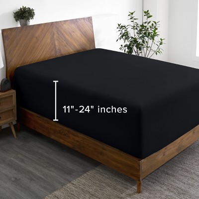 22 Inch Extra Deep Pocket Ultra Soft Easy Care Fitted Sheet by Bare Home - Queen, Black