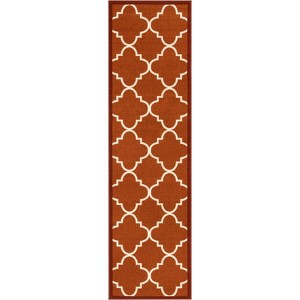 Product Name: Dallas Moroccan Trellis Modern Geometric Lattice Thin Pile Machine Washable Indoor Outdoor 1'8" x 5' Red Area Rug