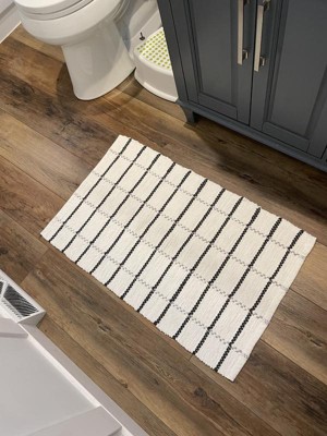 20"x32" Grid Weave Bath Rug Cream/Gray - Hearth & Hand™ with Magnolia: Woven Cotton, Machine Washable