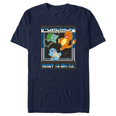 • Strut your stuff with this stylish new men's long-sleeve t-shirt featuring a graphic with the Kanto region starters Bulbasaur, Charmander, and Squirtle with "Ready to Battle" printed below!