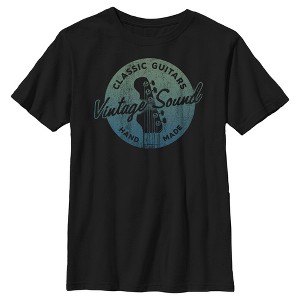 • Strut your stuff with this stylish new boys' t-shirt featuring a headstock inside a circle that says "Vintage Sound Classic Guitars Handmade", all printed in a distressed graphic.
