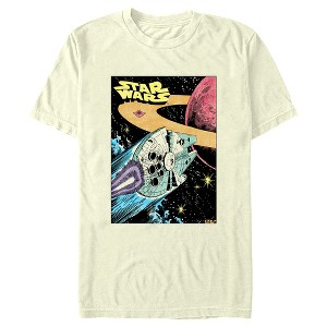 Men's Star Wars: A New Hope Millennium Falcon Comic Book Poster T-Shirt - Beige - Large