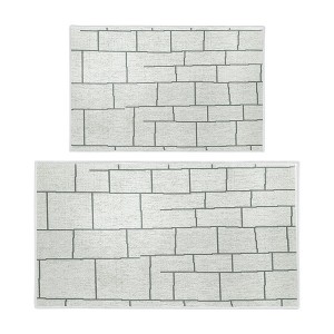Non Skid Washable Kitchen Runner Rug Set of 2 - 70 % Cotton Kitchen Floor Mat[Grid-Ivory]