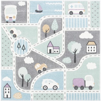 Carousel Kids CRK135 Power Loomed Indoor Area Rug - Navy/Grey - 6'7"x6'7" - Safavieh Kids