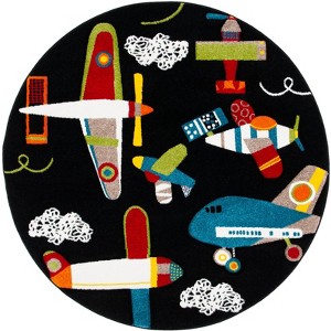 Carousel Kids CRK167 Power Loomed Indoor Area Rug - Black/Ivory - 5'3" Round - Safavieh Kids