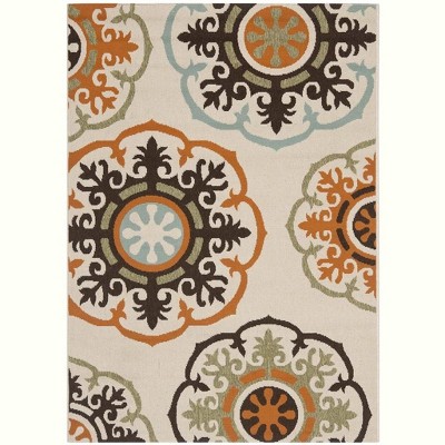 Courtyard CY6011 Power Loomed Indoor/Outdoor Area Rug - Cream/Light Chocolate - 6'7"x9'6" - Safavieh.
