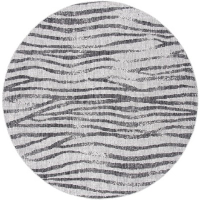 Elevate your indoor or outdoor space with the sophisticated charm of our Power-Loomed Round Area Rug. Perfectly sized at an ample 6'-7" X 6'-7", this stylish rug features a beautifully intricate pattern that weaves together shades of grey and black to create a visually stunning focal point for any room or patio.
