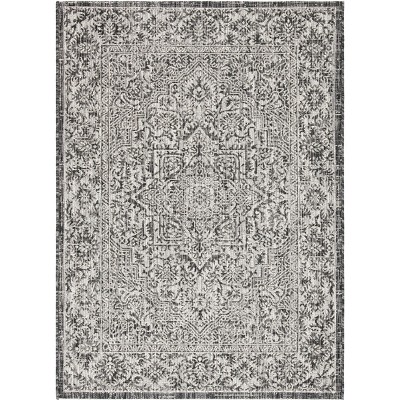 Courtyard CY6201 UV & Stain Resistant Non-Shedding Power Loomed Indoor/Outdoor Accent Rug - Grey/Bone - 4'x5'7" - Safavieh