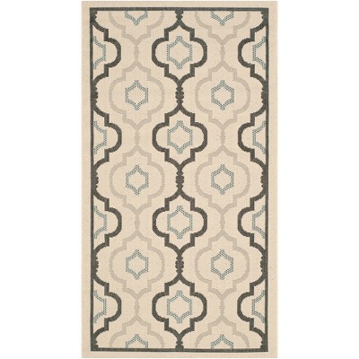 Courtyard CY8444 UV & Stain Resistant Non-Shedding Power Loomed Indoor/Outdoor Accent Rug - Ivory/Black - 2'7"x5' - Safavieh