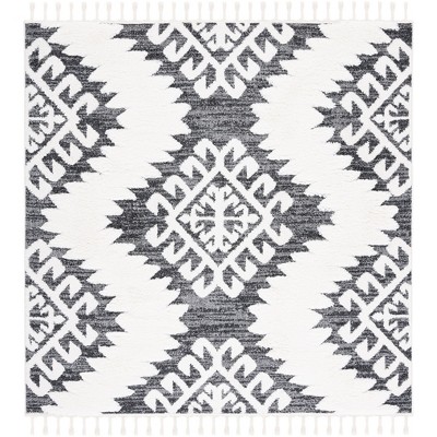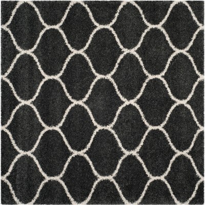 Introduce a touch of modern sophistication into your living space with our exquisite 3' X 3' square, dark grey and ivory area rug. Designed with a tasteful geometric pattern, this shag style rug exudes luxury and comfort, thanks to its plush 1 3/4" height, which creates a sumptuous underfoot experience.