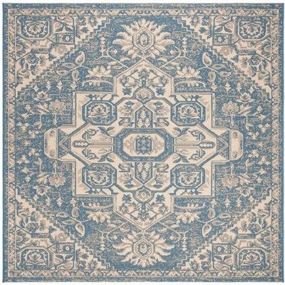 Beach House BHS138 Power Loomed Indoor/Outdoor Accent Rug - Cream/Blue - 4'x4' - Safavieh