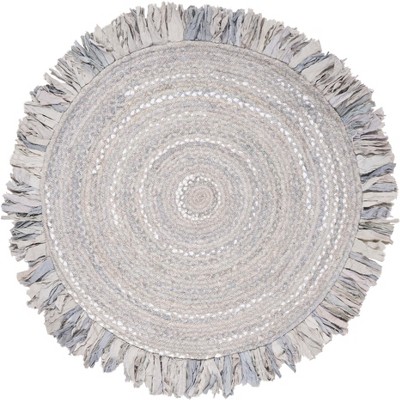 Braided BRD950 Hand Woven Area Rug - Light Grey - 4' round - Safavieh.