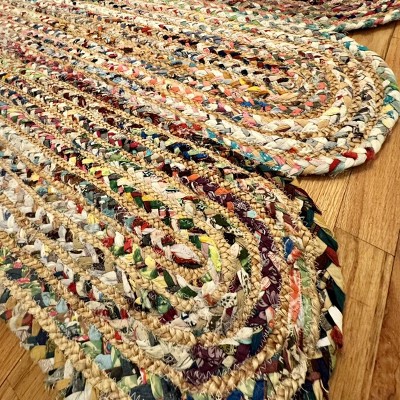 I ordered the 6'x9' in blue/natural. I wanted a braided rug, but something a little different--which is why the curved edges drew me in. It's very unusual and pretty. The thing I was surprised at most was how boldly blue it is compared to the rug pictured. It looks like it's made of blue jeans in many different shades from light to dark. Brighter than I expected, but not distasteful. In between the woven denim is a braided jute. A positive is that the edges of the rug did not curl up. They stayed down immediately upon unrolling. Beware this is a very dense and heavy rug, if you are to be lifting it by yourself.