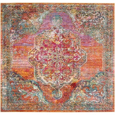 Crystal CRS502 Power Loomed Indoor Area Rug - Orange/Light Blue - 9'x9' - Safavieh