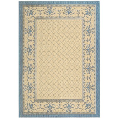 Courtyard CY0901 UV & Stain Resistant Non-Shedding Power Loomed Indoor/Outdoor Runner Rug - Natural/Blue - 2'3"x10' - Safavieh