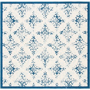 Courtyard CY6784 Power Loomed Indoor/Outdoor Area Rug - Ivory/Navy - 6'7"x6'7" - Safavieh.