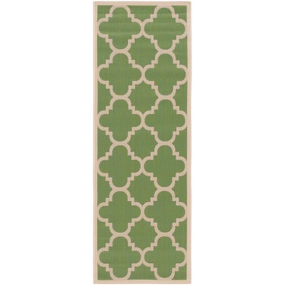 Courtyard CY6919 UV & Stain Resistant Non-Shedding Power Loomed Indoor/Outdoor Runner Rug - Green/Beige - 2'3"x12' - Safavieh