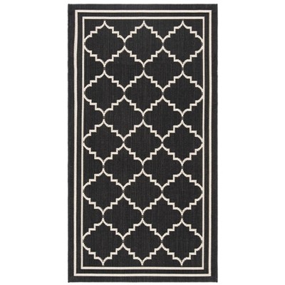 Courtyard CY8787 UV & Stain Resistant Non-Shedding Power Loomed Indoor/Outdoor Area Rug - Black/Grey - 6'7" Round - Safavieh