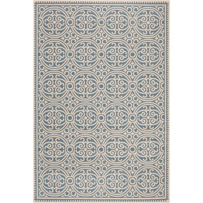 Linden LND181 Power Loomed Indoor/Outdoor Area Rug - Blue/Creme - 5'3"x7'6" - Safavieh