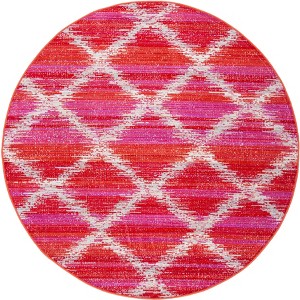 Montage MTG261 Power Loomed Indoor/Outdoor Area Rug - Fuchsia/Ivory - 6'7" Round - Safavieh