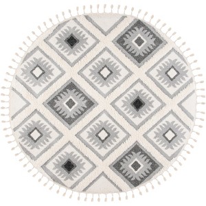 Moroccan Tassel Shag MTS601 Power Loomed Indoor Accent Rug - Ivory/Grey - 4' Round - Safavieh
