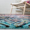 Rug is beautiful, color is more turquoise than green. Pile is high and thick. However we have had this rug for one month and with vacuuming every other day it is still shedding a lot.