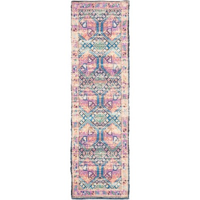 Saffron Area Rugs bring the magnificent designs of classic oriental rugs to flat weave floor coverings. These trendy rugs are hand loomed and color printed with traditional patterns revived in engaging hues. It's a mod boho look styled for today's unbound decor tastes. Care Instructions: Vacuum Without Beater Bar