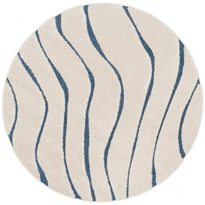 Florida Shag SG471 Power Loomed Indoor Area Rug - Cream/Blue - 6'7" Round - Safavieh