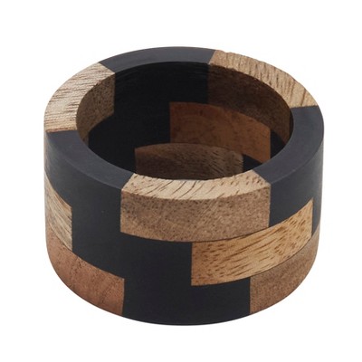 Saro Lifestyle Napkin Rings with Wood Ribbed Design (Set of 4), Beige