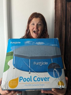 Pool cover fits 10-foot above-ground round pools and is suitable for Funsicle Oasis and Activity pools