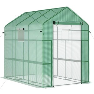 Outsunny 7' x 5' x 6' Walk-in Greenhouse, 2-Tier Shelf Hot House, Roll Up Zipper Door, UV protective for Flowers, Herbs, Vegetables, Green