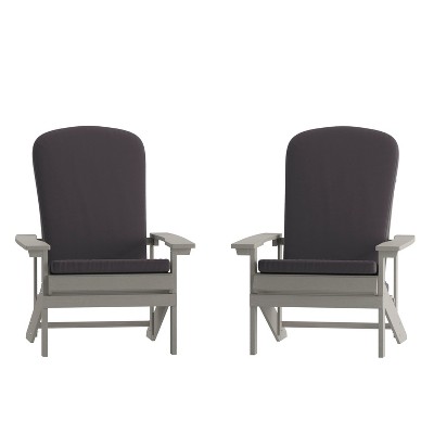 Merrick Lane Set of 2 Gray Weather Resistant Folding Adirondack Patio Chairs With Vertical Lattice Backs and Comfort Foam Cushions in Gray