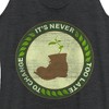 • Strut your stuff with this stylish new Earth Day women's racerback tank top that is perfect for heading out into the wilderness! Featuring a distressed graphic of the Plant in the Boot encircled by the phrase "It's Never Too Late to Change" across the front.