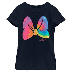 Girl's Minnie Mouse Tie-Dye Rainbow Pattern Bow T-Shirt - 1 of 4