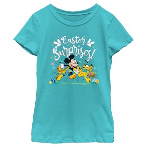 Girl's Mickey & Friends Easter Surprises Mousey and Pluto T-Shirt - Tahiti Blue - Small