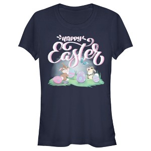 Juniors Womens Bambi Happy Easter Thumper T-Shirt - Navy Blue - 2X Large