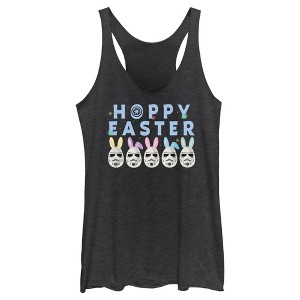 • Grab a basket and go on a hunt for this Easter women's racerback tank top! Featuring five Easter egg Stormtroopers wearing rabbit ears and the text: "Hoppy Easter," across the top.