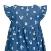 All over print design; Rib knit crew neck collar; Cute and stylish ruffles by shoulders; Fashionable skater style dress; Pull on closure