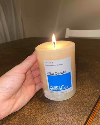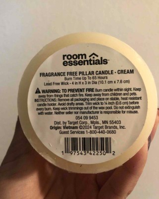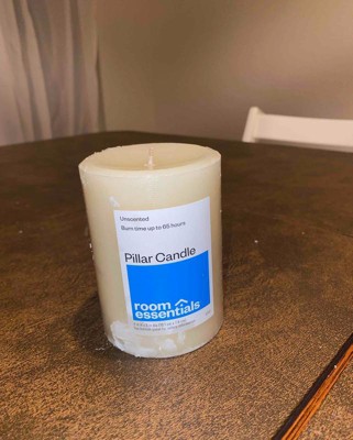 3" x 4" Unscented Candle Cream - Room Essentials™: Paraffin Wax, 65 Hours Burn Time, 1 Wick Pillar