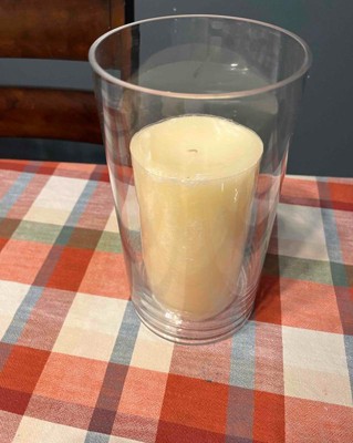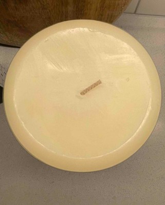 This unscented 4 x 7 cream candle Is very sturdy and durable, the wick looks like a good size and it lights really easily, and it is supposed to burn very slow. Unfortunately, the sticker from the bottom fell off and attached to a different item in my package. Target actually packaged my box of candles really poorly, and I am quite upset about that, but despite that, this candle seems like it would last well. I received an incentive to write this review.