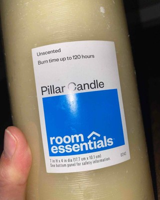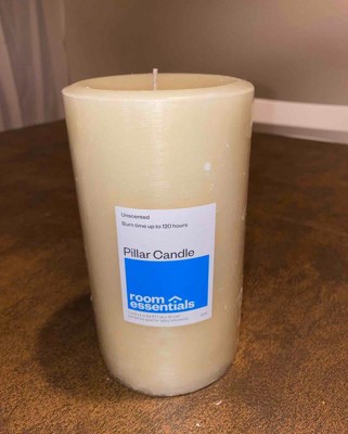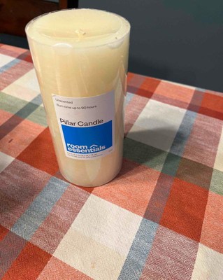 7" x 4" Unscented Pillar Candle Cream - Room Essentials™: Paraffin Wax, 120hr Burn Time, 1 Wick