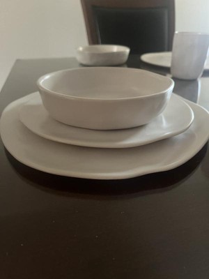 [This review was collected as part of a promotion.] This dining room stoneware set is absolutely stunning, chic and gorgeous. I love how thin the plates are and how they have an uneven hammered look. I have used these for several occasions recently and have had tons of compliments and questions of where they can get a set! I keep these on display on my table and it makes it looks so formal and beautiful with a touch of minimalist!