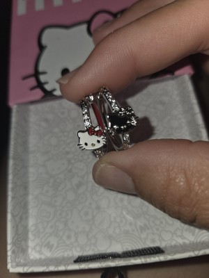 - A Hello Kitty sparkler! These small hoop earrings feature a cubic zirconia-studded exterior and the classic Hello Kitty face in white, red, black, and yellow enamel. Red enamel colors the interior to match back to the red Hello Kitty bow