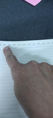 I Received a really nice note book in the mail today. This note book is awesome! It has a nice fabric cover and back with spiral binding. Nice color pages with lots of room to write or jot down notes. At the top of all pages there is a line of every month that you can circle. I definitely would buy again. Would also be a nice gift.