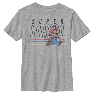 Boy's Nintendo Super Mario Bros. Retro Stripe Mario Logo T-Shirt - Athletic Heather - Large