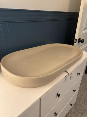 So happy we got this for our third baby! So much easier to wipe clean compared to the soft changing pads!