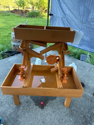 Unfortunate upon opening the box it was noted that the plastic bin (Part 3) was severely cracked. Reached out to the Avenlurs support team via email and am awaiting response. Provided they are able to replace the broken bin this water table seems awesome. Needs to be stained before use but other than a lot of initial setup time I foresee this being thoroughly enjoyed by my littles.
