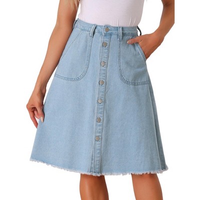 Treat yourself to the classic feel in this denim skirt with a slit front and washed details. This cute jean skirt is designed for women's knee length. You can wear it with dressy tops. The comfortable and soft fabric is perfect for everyday wear in summer, spring, and fall. Perfect for family gatherings, birthday parties, and anniversaries this jeans skirt, is trendy.