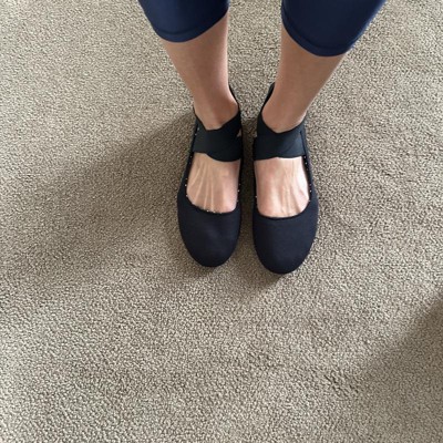 Such a comfortable shoe!!! I am wearing a 10 and I typically wear a 9.5. This shoe goes on easy and feels like it will stay on and not slip off! The sole is nice and not too thck so it really gives a ballet flat look. I love the ballet pointe shoe ankle straps made of elastic. They come in so many colors too and i am going to buy more. I wore mine with socks today because it is rainy and chilly and they still looked cute. I got compliments while wearing them. The inside of the shoe is a cute polkadot pattern and well cushioned for comfort. I really like them This item Felt true to size and the width Felt true to width. I received an incentive to write this review.