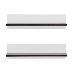 The Danya B. Repose Display Photo Ledge Shelf Set of 2 provides two sleek shelves to display your prized art and decor. These floating wall shelves feature a prominent ledge to put your favorite books, houseplants, framed photos, and other home decor on prime display. This set of two ledge picture shelves encourages flexible configuration options throughout your home; the shelves can be stacked, placed side-by-side for extended storage, or even placed separately throughout your home to maximize your wall space and storage options. The minimal yet stylish design ensures these shelves will fit seamlessly into any room, from hallway to bedroom. This set of 2 is available in either Chestnut or Black finish to best match your existing style and decor; we also encourage you to mix-and-match these sets to add visual interest to your walls.